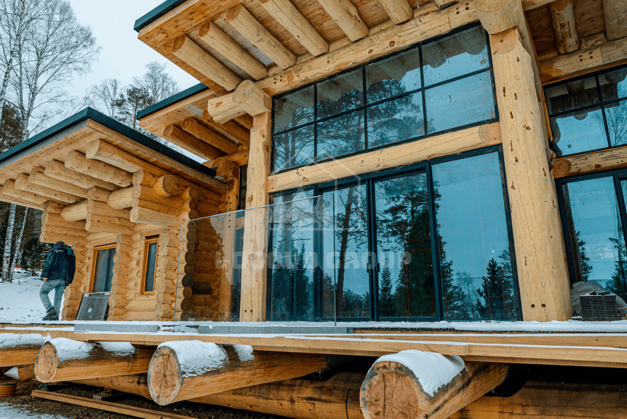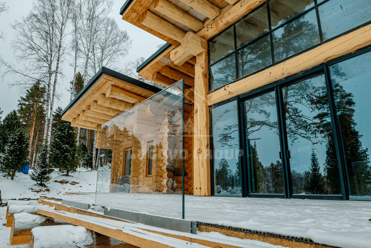 Внешний вид дома также заслуживает внимания: деревянные стены, украшенные резьбой или другими декоративными элементами, большие панорамные окна позволяющие максимально использовать естественный свет, что создаёт светлое и просторное внутреннее пространство. Большие окна визуально увеличивают площадь помещений, делая их более открытыми и воздушными. Это особенно важно для гостиничного комплекса, где комфорт и ощущение простора играют ключевую роль в создании положительного впечатления у гостей.