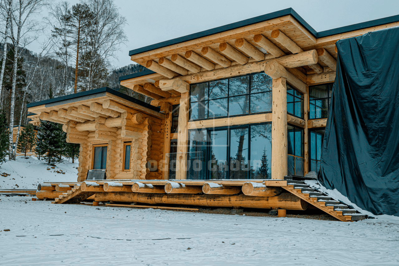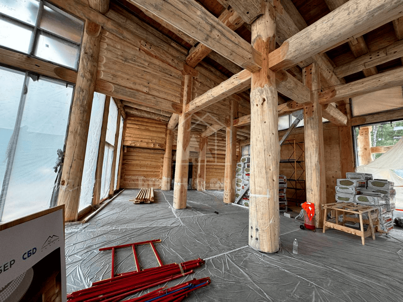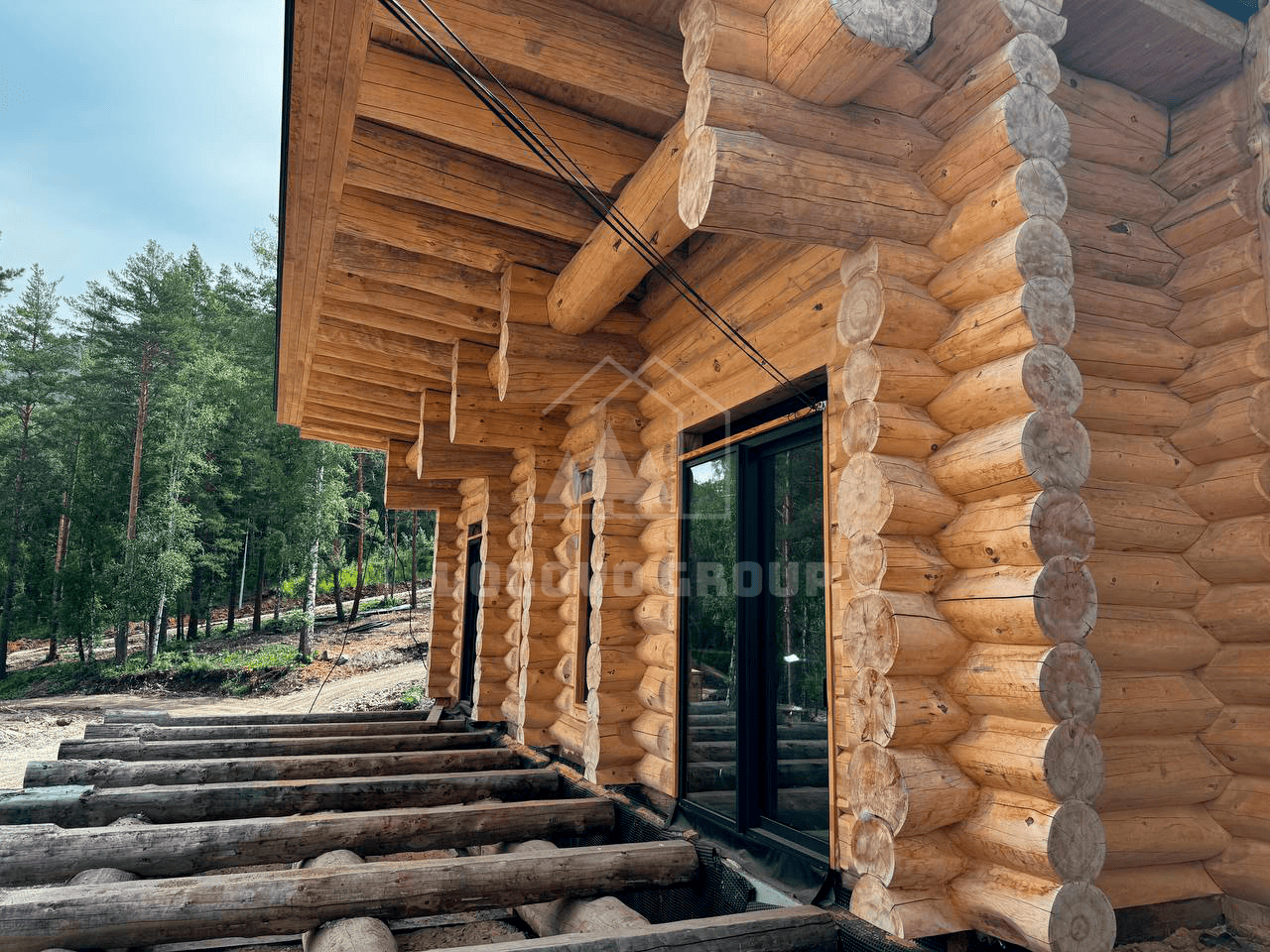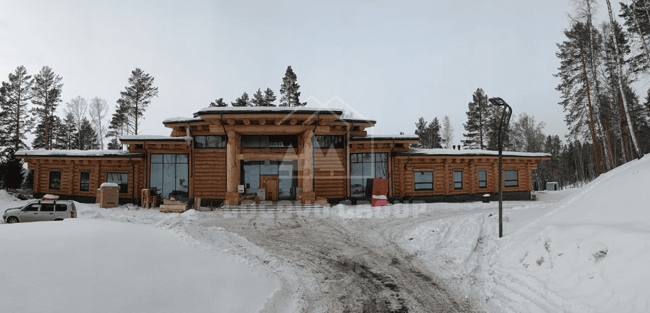 Деревянный дом площадью 355 квадратных метров, может являться частью гостиничного комплекса. Построен из высококачественных брёвен кедра, диаметром 40–45 сантиметров, что обеспечивает отличную теплоизоляцию и долговечность конструкции. Благодаря использованию натуральных материалов, в доме создаётся особая атмосфера уюта и гармонии с природой.